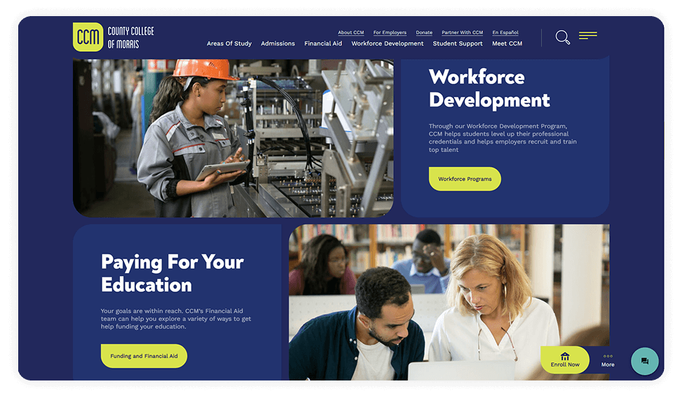County College of Morris (CCM) asked us to redesign the online experience for its diverse community, including current and prospective students, faculty, and staff. The existing site was outdated, lacked clarity, and was difficult to navigate, thus failing to effectively represent CCM's credibility and mission.